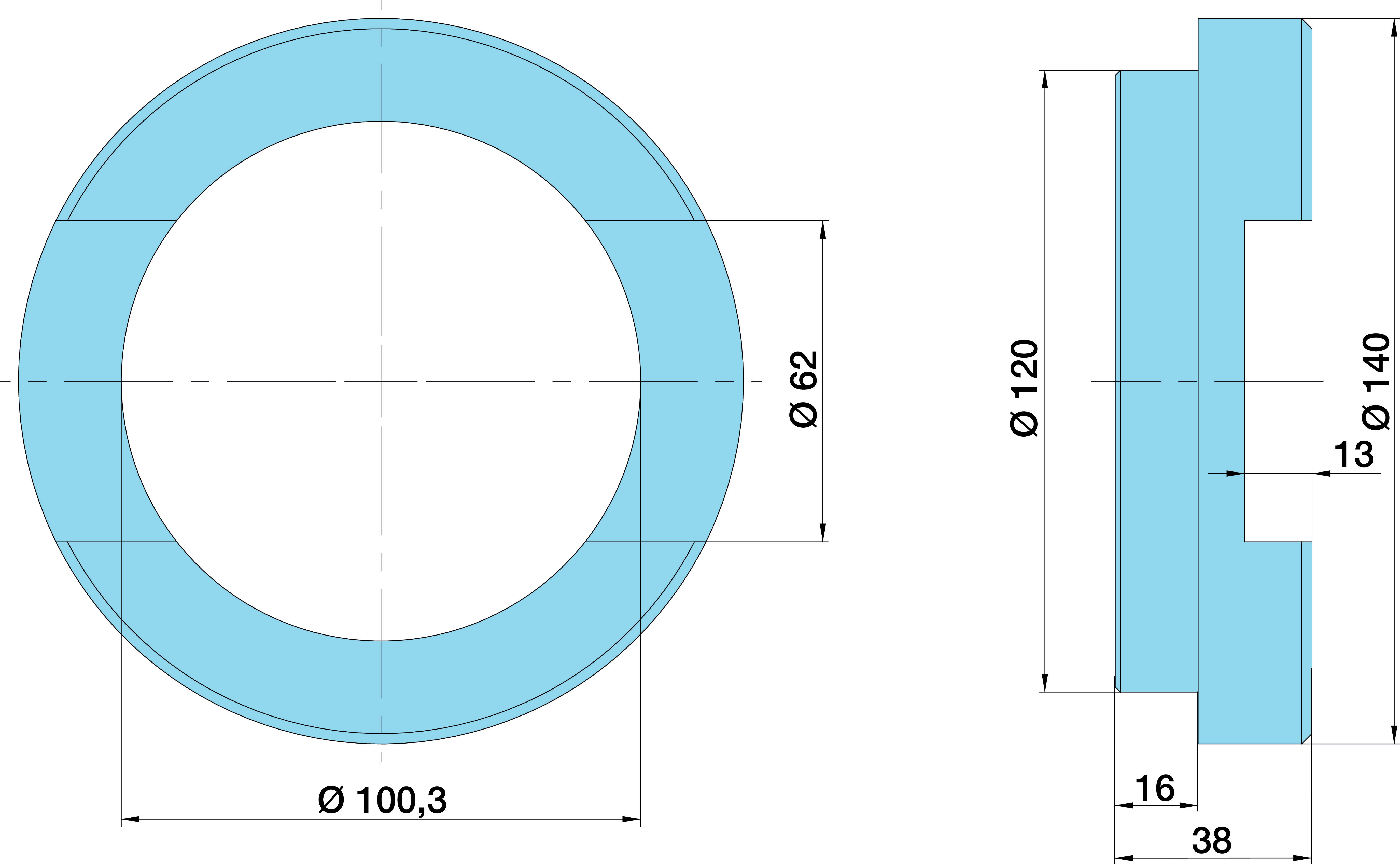 0311360200 Laakerin holkki, jarruakseli1 HELA 139.7/100.3X 38 F.Trunn.Block Outs.