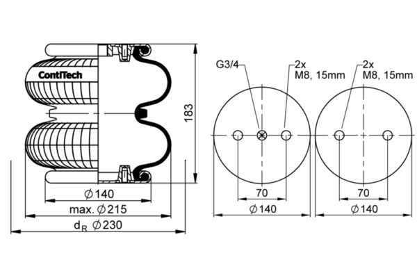 FD 120-17 3/4 M8 Jousipalje, ilmajousitus-akselinnosto / Metallipalje, ilmajousitus1 ILMAPALJE