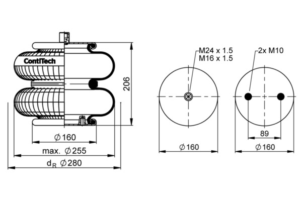 FD 200-25 M24 M10 Jousipalje, ilmajousitus-akselinnosto / Metallipalje, ilmajousitus1 NOSTOPALJE 10X2 VL FH2/FMX2 Pusher akselin nosto