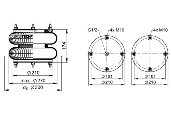 FD 210-22 1/2 M10 Jousipalje, ilmajousitus-akselinnosto / Metallipalje, ilmajousitus1 NOSTOPALJE 10X2 4P 1/2 Keskireikä