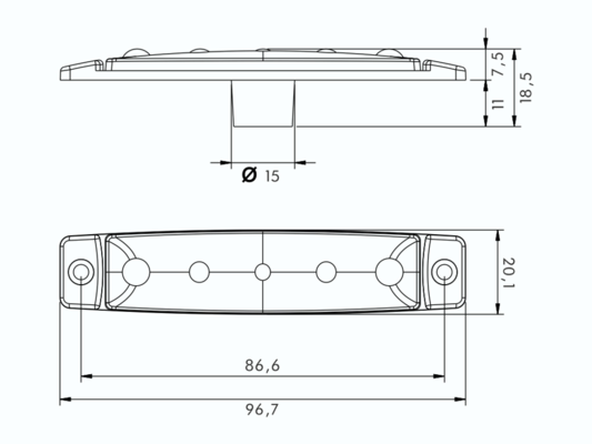 40061001 Sivumerkkivalo1 SIVUVALO "PRO-FLAT" LED KELTAINEN 12/24V 5 lediä, 0,25m johto avoin