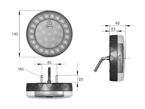 40025502 Takasumuvalo / Peruutusvalo1 PERUUTUS/SUMUVALO Ø140 12/24V 0,5m johto avoin, ADR